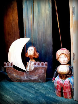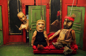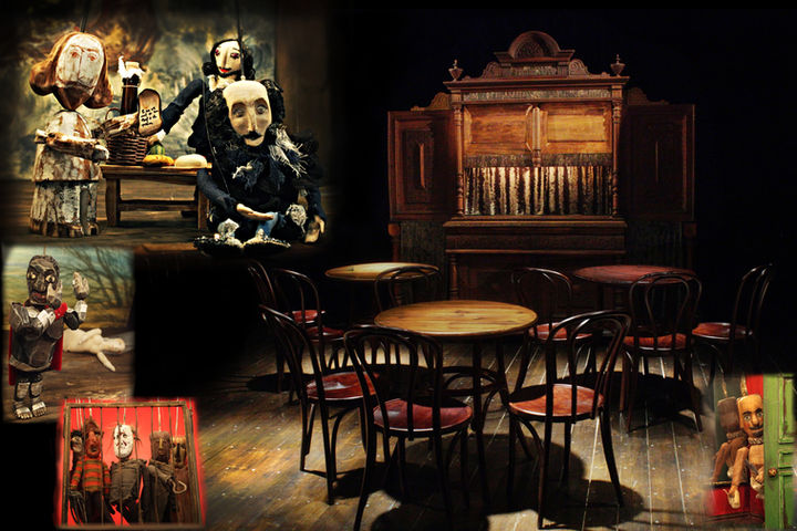 Le théâtre est une fête, mais une fête de la finesse du goût ! Nos marionnettes, montées telles des pièces artisanales uniques, évoluent à l'intérieur d'un buffet des antiquités qui en constitue la scène.